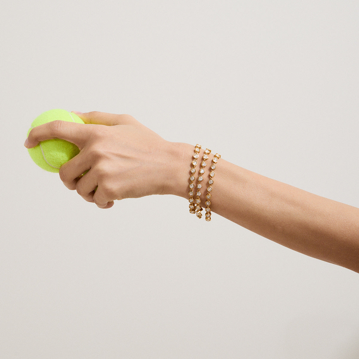 Romani reinvents the classic tennis bracelet with a romantic touch.