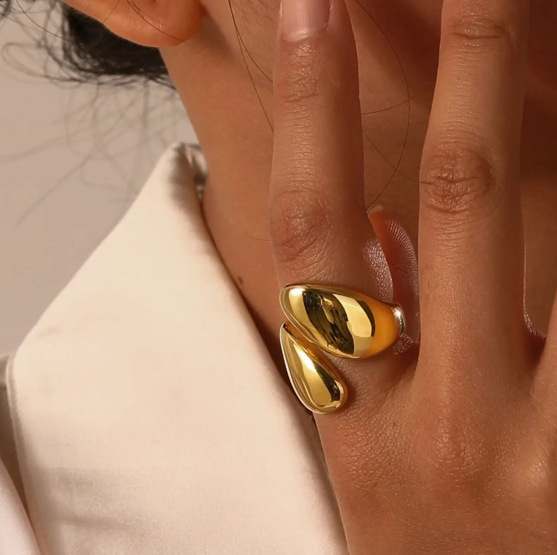 Embrace the art of minimalist style with the Hattaria Gold-plated Ring. Its fluid, open design creates a sculptural effect on the finger. Handcrafted in 18K gold-plated, it is both water-resistant and gentle on the skin, allowing you to wear this modern work of art every day.