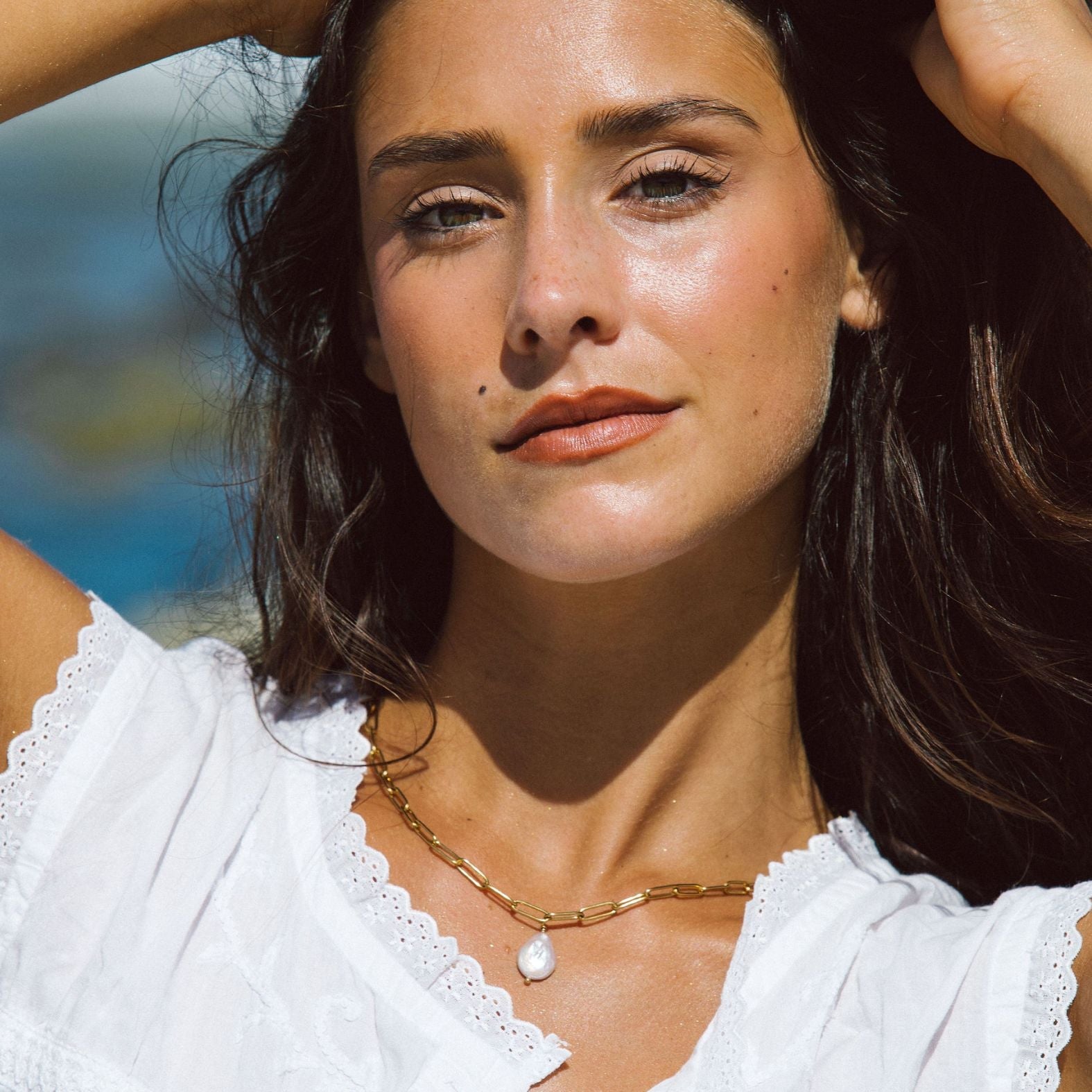 Our Keshi Pearl Necklace stands as a sophisticated gold-plated accessory which adds elegance to any woman's style. The fine pearl necklace creates a sophisticated feminine appearance when combined with pearl hoop earrings. The necklace combines delicate materials with modern design elements to create a piece that exudes both softness and feminine charm. The necklace offers a bright and distinctive selection that appeals to all jewelry enthusiasts.