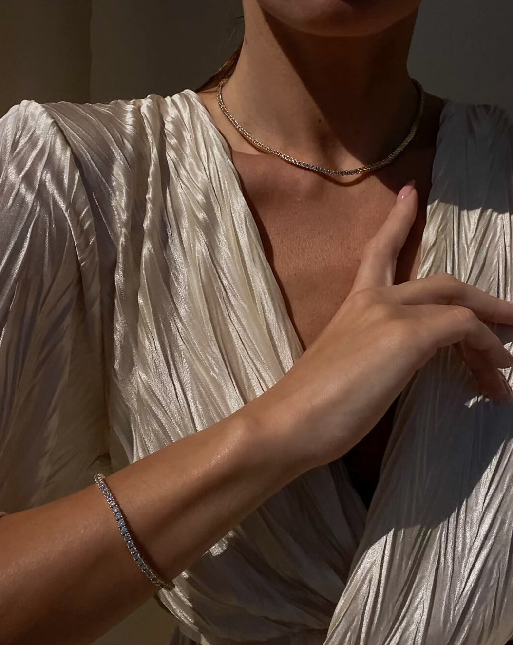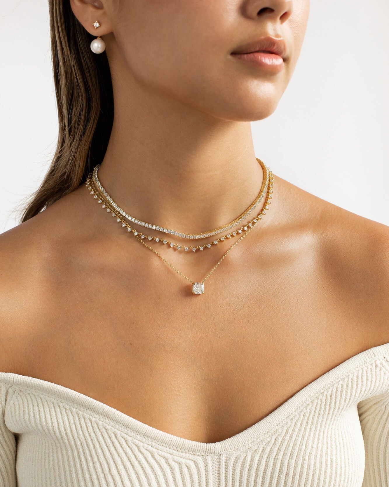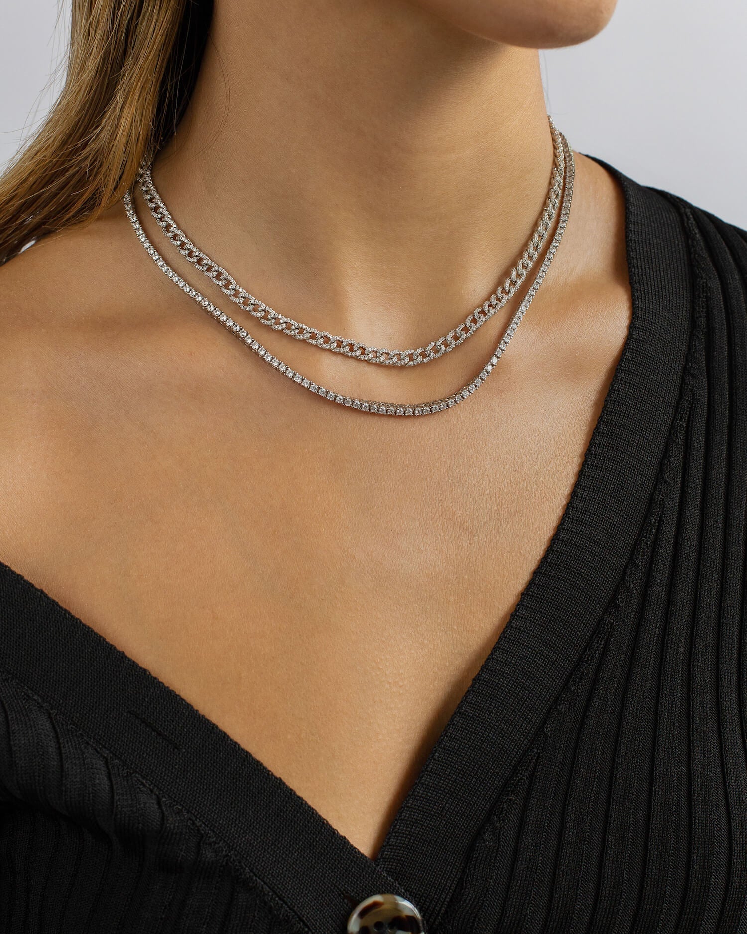 A subtle yet radiant tennis necklace featuring 2mm cubic zirconia stones. Available in 40, 45, or 50 cm lengths, and crafted in 925 sterling silver or 14K gold plating. This refined piece is perfect for layering or wearing alone for a minimalist, chic look. An ideal gift for her. Non-adjustable chain, hand-finished for a touch of artisanal quality.